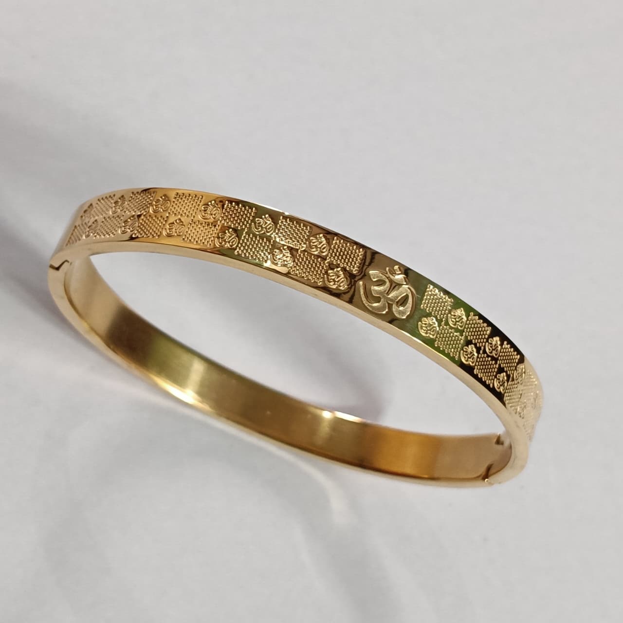 Add a divine touch to your style with this Om Gold Plated Bracelet. Crafted with intricate detailing and a beautiful engraved “?” design, it blends spirituality with modern elegance — perfect for daily wear or gifting.